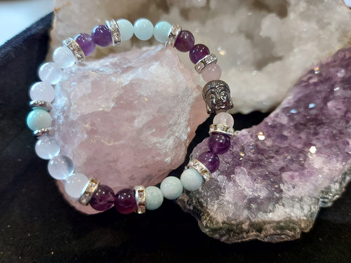 Bracelet AMAZONITE/ AMETHYSTE/ QUARTZ ROSE
