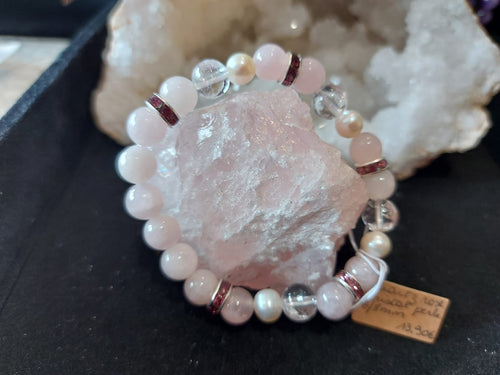 Bracelet QUARTZ ROSE, CRISTAL & PERLES DOUCES